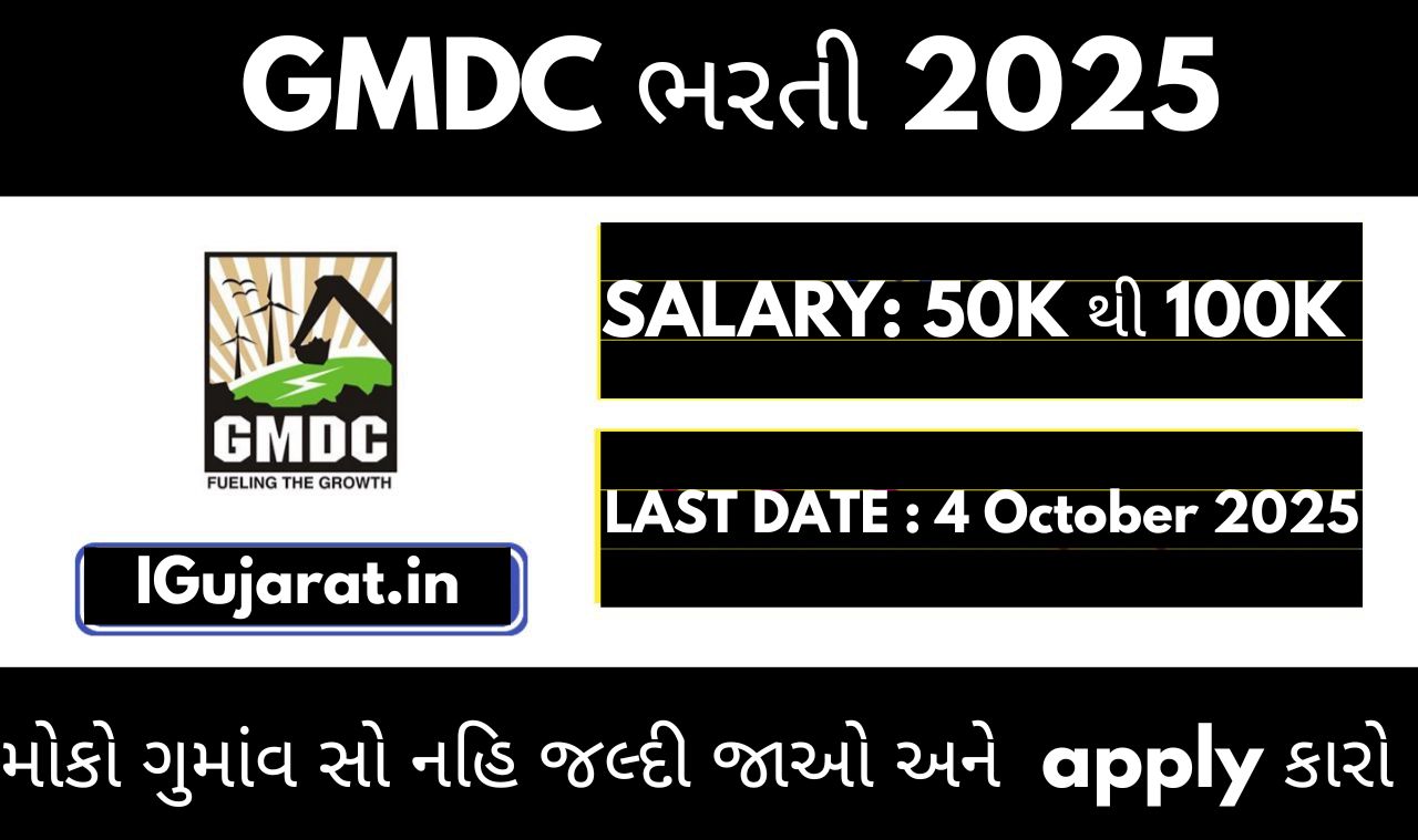 ક્રમાંક અને વિભાગ1️⃣ ભરતીની મુખ્ય માહિતી2️⃣ લાયકાત અને ઉંમર મર્યાદા3️⃣ પગાર અને સુવિધાઓ4️⃣ અરજી કરવાની રીત5️⃣ મહત્વપૂર્ણ તારીખો6️⃣ પસંદગી પ્રક્રિયા7️⃣ સીધી અરજી લિંક8️⃣ વધુ માહિતી 1️⃣ ભરતીની મુખ્ય માહિતી ગુજરાત મિનરલ ડેવલપમેન્ટ કોર્પોરેશન (GMDC) ગુજરાતની જાણીતી સરકારી સંસ્થા છે, જે mining, minerals અને industrial development ક્ષેત્રમાં કામ કરે છે.2025 માટે GMDC દ્વારા અનેક Managerial & … Read more